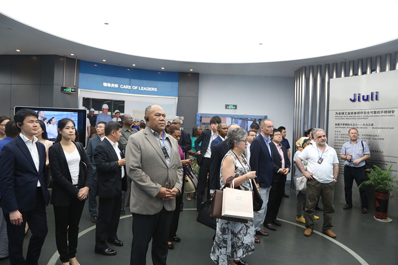 各使節(jié)在公司工作人員的陪同下參觀了久立展廳及研發(fā)中心,了解了久立發(fā)展概況,并做相關(guān)交流。他們對(duì)久立的發(fā)展給予了肯定,對(duì)久立的熱情接待表示感謝。
