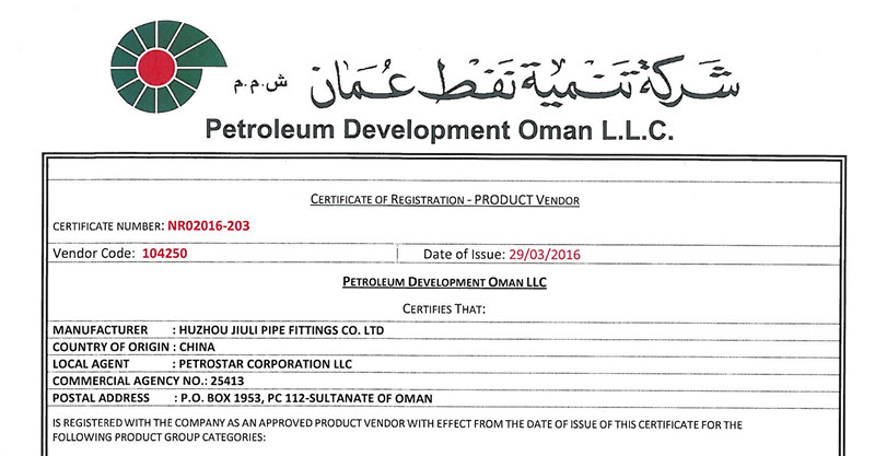 熱烈祝賀久立管件通過(guò)阿曼石油開發(fā)公司(PDO)批準(zhǔn)供應(yīng)商認(rèn)證