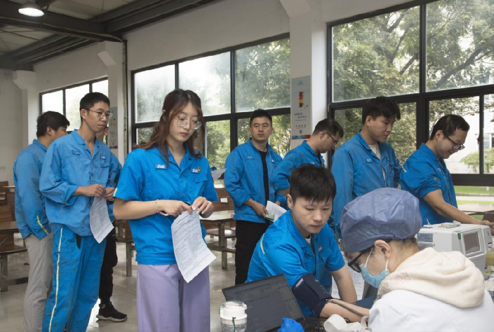獻(xiàn)血現(xiàn)場,久立員工在志愿者的指引下,有條不紊地排隊(duì)填寫表格,認(rèn)真做好測量血壓、采血檢驗(yàn)等準(zhǔn)備工作。在醫(yī)務(wù)人員的指導(dǎo)下,他們積極配合伸出胳膊,讓“愛”緩緩流入一個(gè)又一個(gè)的儲血袋,用可再生的血液挽救不可再來的生命。